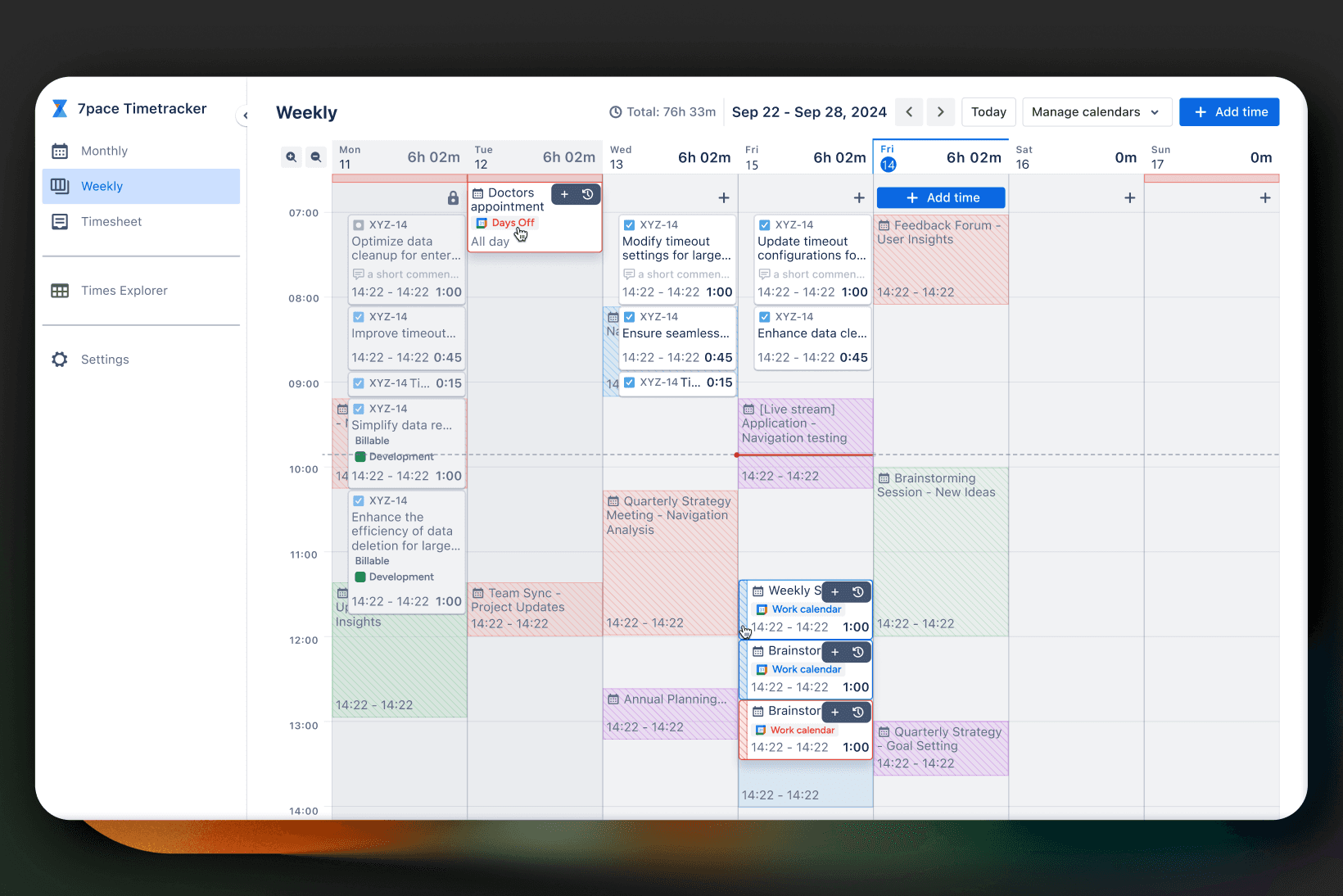I led the design of a calendar-driven time tracking experience for 7pace, focused on reducing friction in daily logging across complex enterprise workflows. Traditional time tracking tools were disconnected from how people actually work.