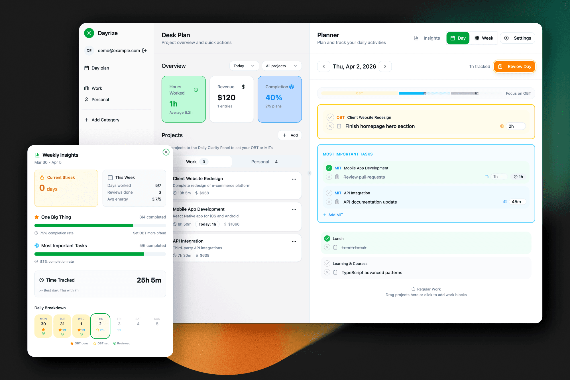 It’s easy to fill a day with tasks without clear priorities. Users track activity, but not focus.
