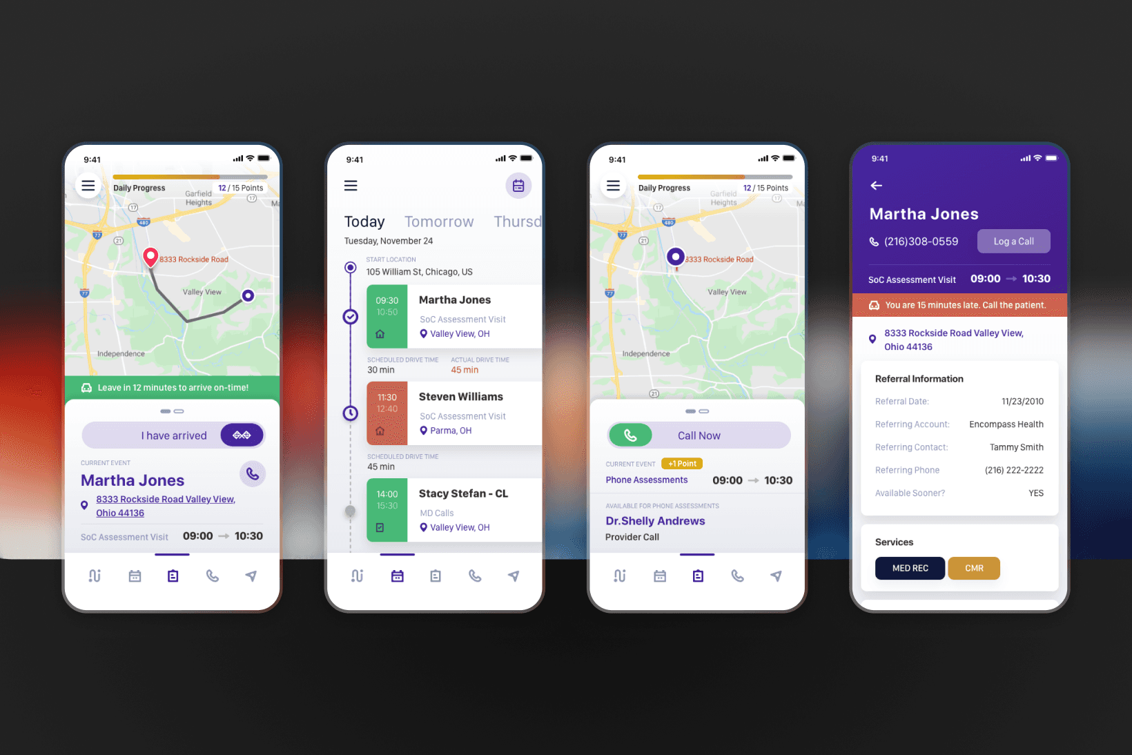 I focused on designing connected experiences across these roles. For patients, the goal was clarity and ease of use when managing medication routines and schedules. For providers, the focus was on structured workflows: scheduling visits, accessing patient information, and supporting care in context. The design emphasized clear hierarchy, step-based flows, and consistent patterns across devices, helping users navigate complex information with minimal effort.