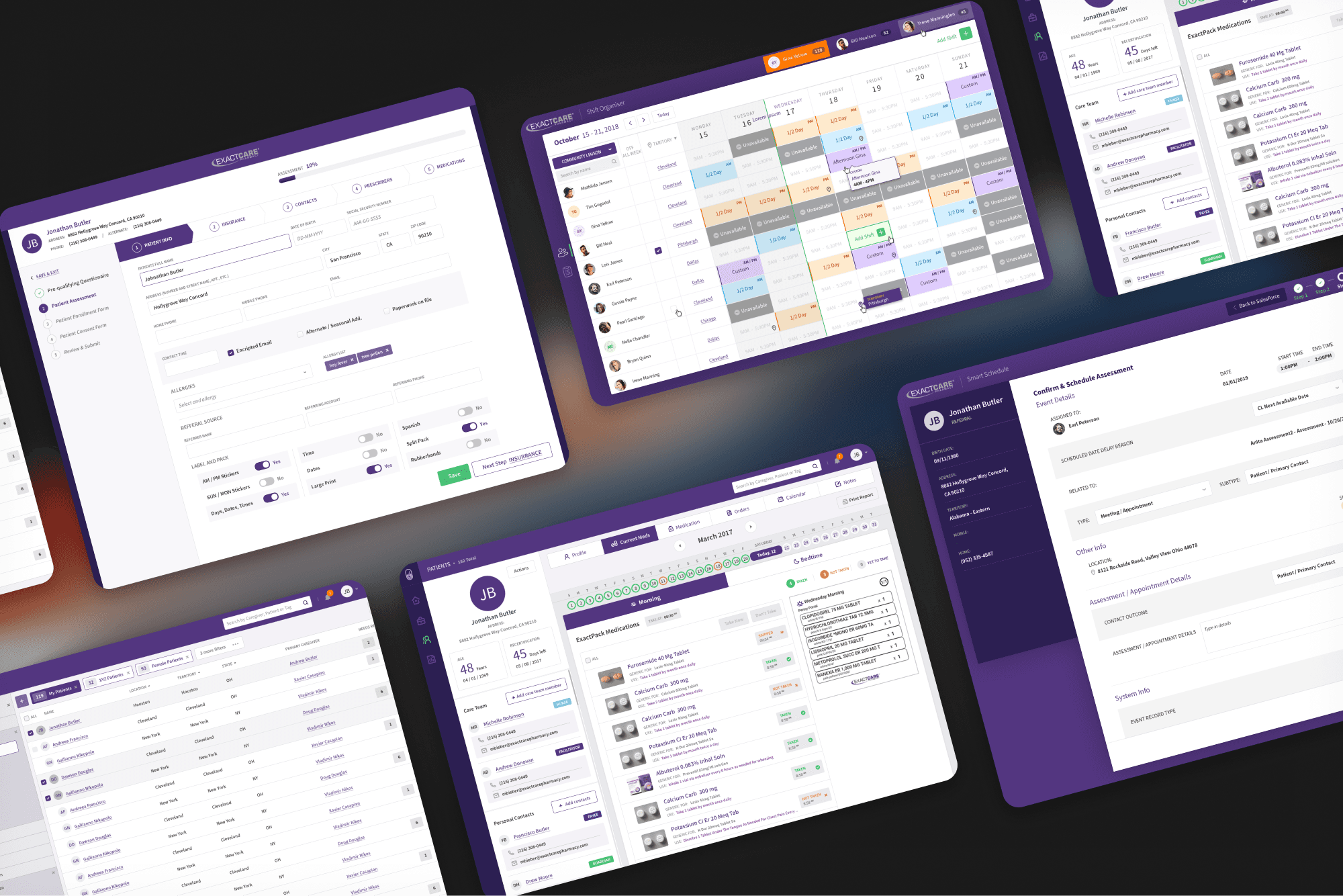 I worked on ExactCare, contributing to both marketing and product experiences in the healthcare and pharmaceutical domain. My work spanned the website as well as two core platforms: a patient-facing experience across mobile, web, and tablet, and a provider-facing system used by physicians and care teams to manage schedules and patient interactions.